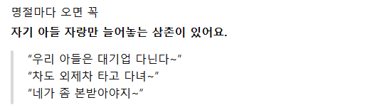 명절에 자기 아들만 자랑하던 삼촌이 조용해진 이유